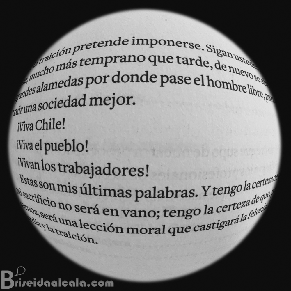 Así, con un destino malogrado como el de los más puros de todos los hombres, Allende persiste como el paladín de la segunda independencia de América, la económica, tan esencial como fue la primera. y retardada a todo costo por las tiranías extranjeras. Recomendado.