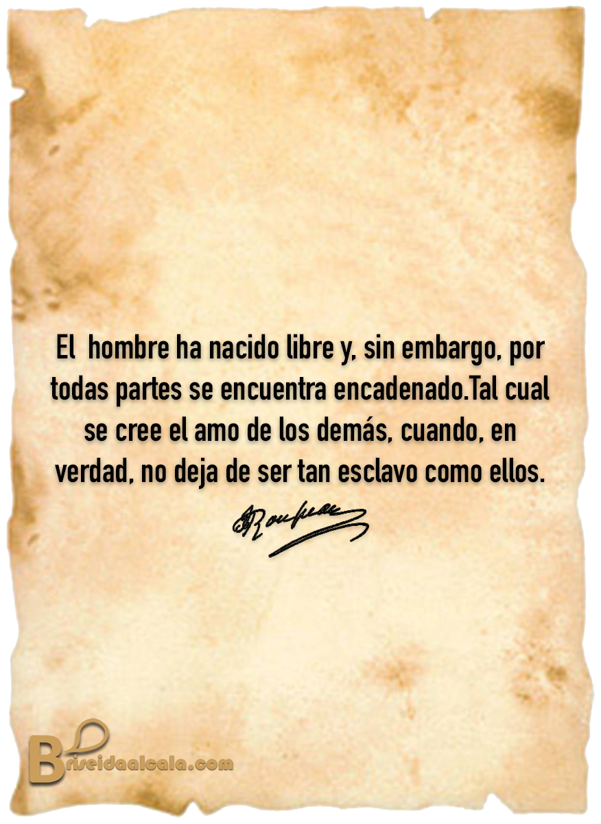 En «el Contrato Social», Jean-Jacques Rousseau expresa una de las ideas más revolucionarias de la historia: «el hombre nació libre» y libre debe seguir siendo por derecho.