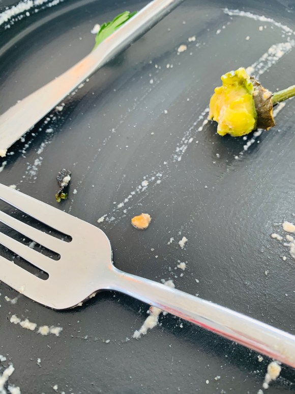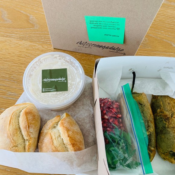 Perfectamente empaquetados se reciben los chiles, un pan de agua por porción, granada, perejil y la nogada; esa fantástica nogada: elegante, con una textura que la distingue por permitir percibir los puntos de la nuez y con esa nota marcada de jerez que la eleva. Respecto al chile siempre pueden elegirse con o sin capear. Definitivamente me decido por los segundos, como la envoltura crujiente de una preparación en la cada ingrediente se siente y también se conjuga.