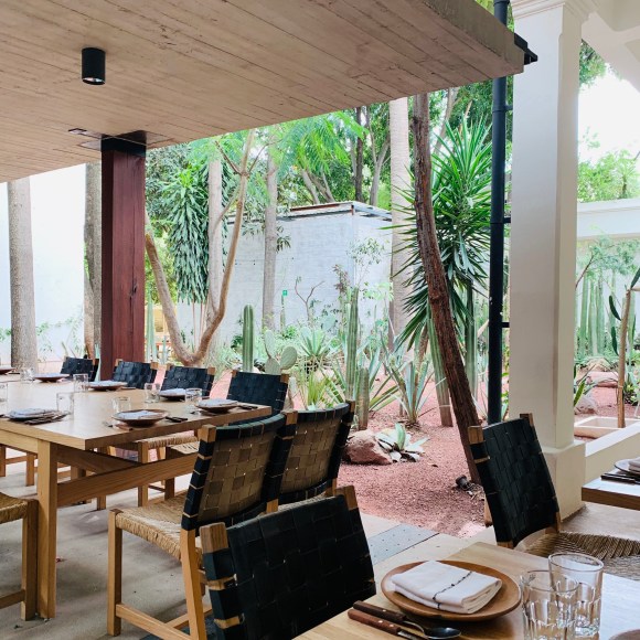 El diseño del espacio expresa el mismo discurso que el concepto en su totalidad. que todo el concepto, una mezcla balanceada entre tradición y contemporaneidad. El fogón, siempre encendido cocina y tuesta tortillas que rápidamente llegan a la mesa junto con salsas verde y rojas en vajilla de barro impecable.
