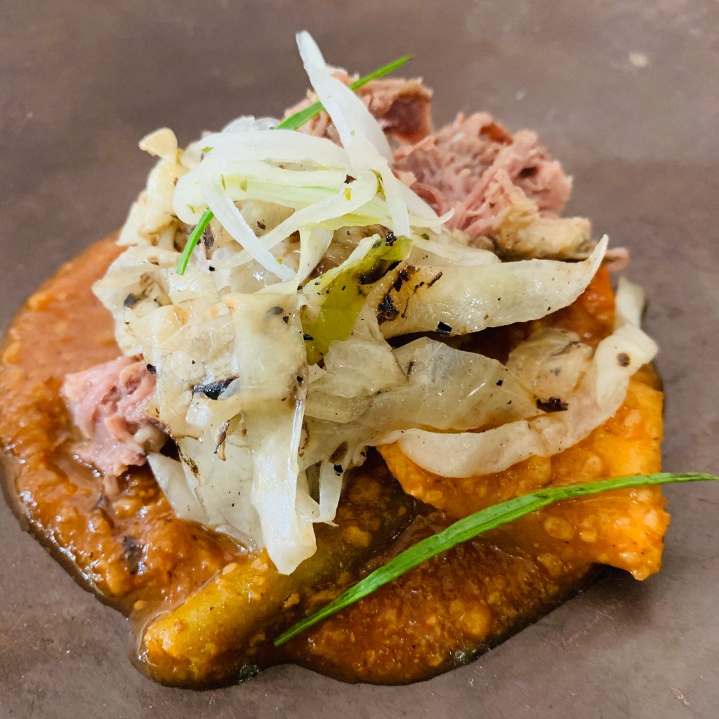 La espera es breve pero la anticipación inmensa. Las entradas o botanas fueron esquites poblanos de una cremosidad exquisita y de una tostada de aguachile de lengua con pure de aguacate y cilantro, en la que destaca la suavidad de órgano complicado de dominar.