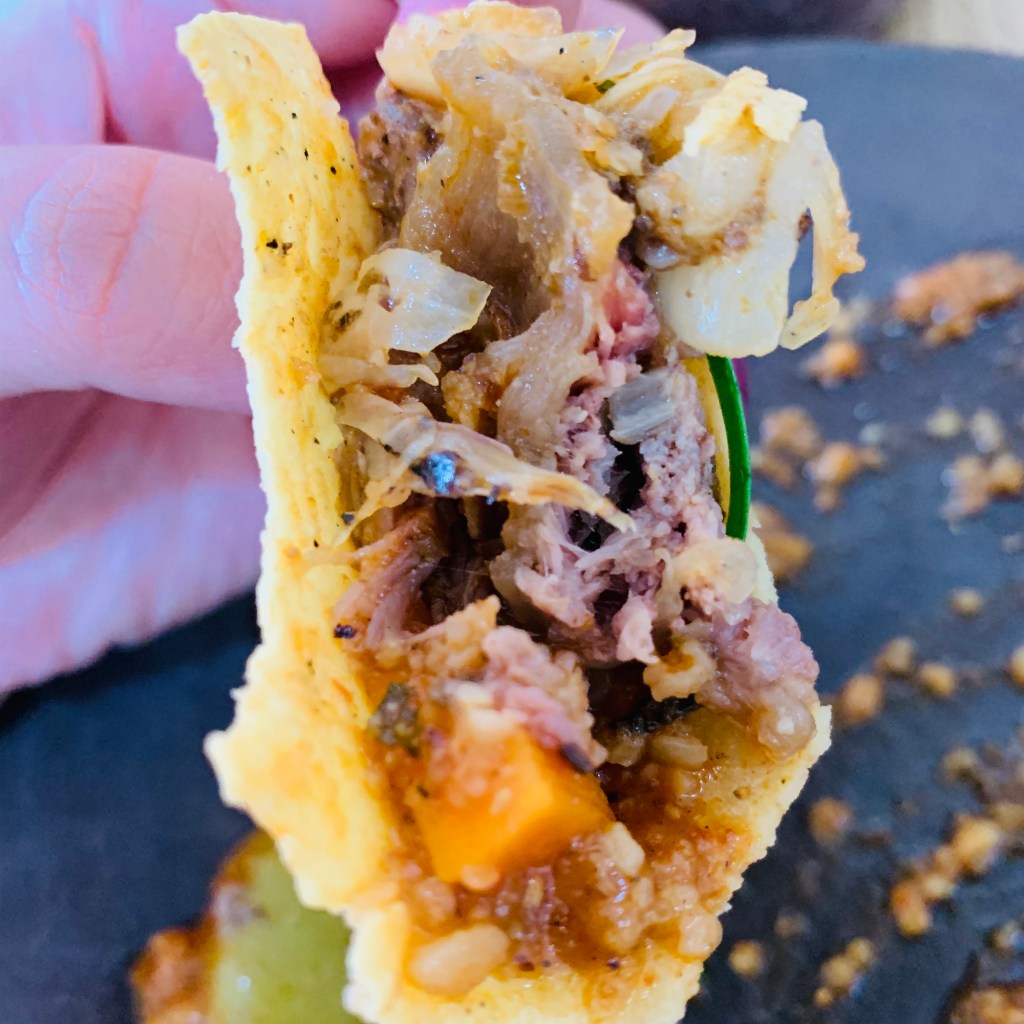 El plato fuerte fue una barbacoa de short-rib, con las legumbres a punto, una especie de estofado, con el que se ofrece tortilla para comerlo en taco.
