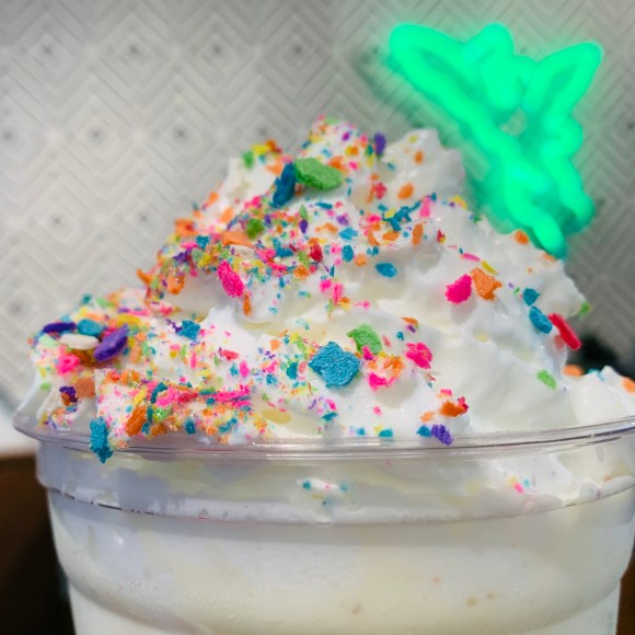 Exclusiva del CDMX, la malteada de horchata es deliciosa, además de festiva y divertida, con el toque de obleas despedazadas que la coronan.