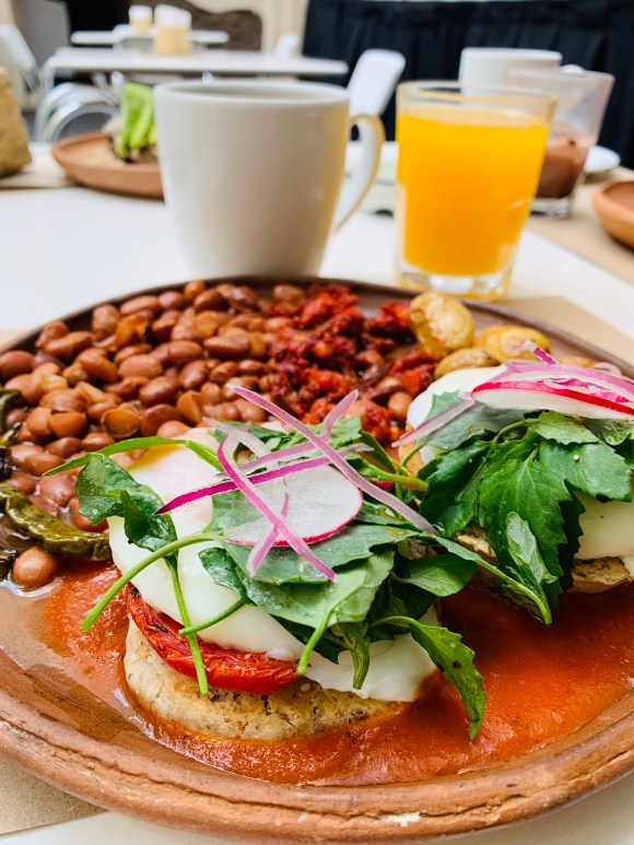 Los desayunos se ofrecen de 8 a 13 hrs, con la opción de barra de desayuno los fines de semana y el resto de los días la posibilidad de convertirlo en un paquete que incluye café o té, un jugo, fruta y una pieza de pan dulce.