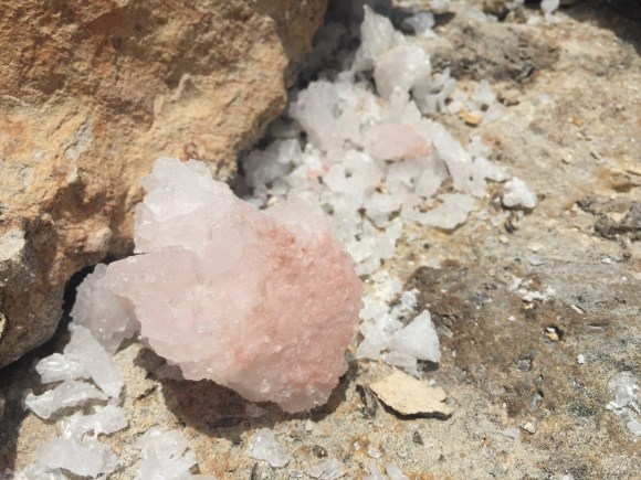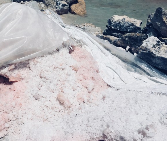 Sin perder su dimensión onírica toda la experiencia es genuina, a las orillas de la salina se encuentran apilados los montones del material recolectado, con un color que varía del rosa pálido al intenso.