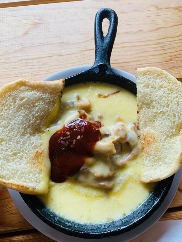 Destaca su fondue con pulled pork que impregna al queso derretido con la deliciosa suavidad de la carne de cerdo bañada en el bbq de la casa que realza un punto etílico.