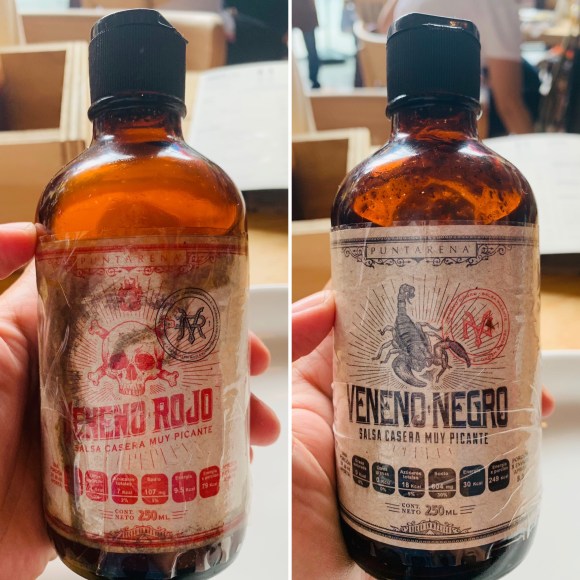 Para complementar y acompañar se ofrece siracha, más bbq y dos variantes de veneno, salsas locales de llamativo nombre con base de soya, de la que preferí la oscura.