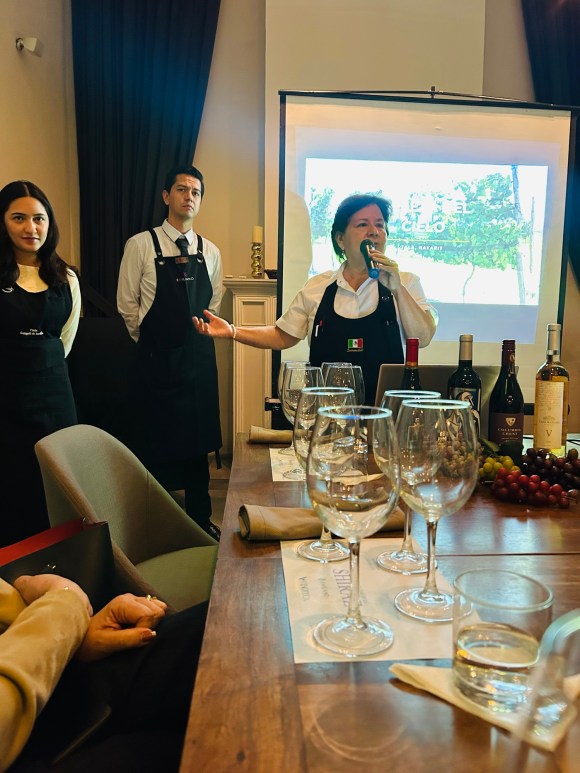 La Sommelier Dora González encabezó el evento de celebración y generosa permitió que los dos jóvenes sommeliers la guiaran.