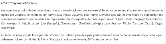 Los nombres de los signos del Zodiaco se escriben con mayúscula inicial («Ha nacido bajo el signo de Géminis»), salvo si aluden a la persona nacida bajo cada uno de ellos («Ella es géminis»):