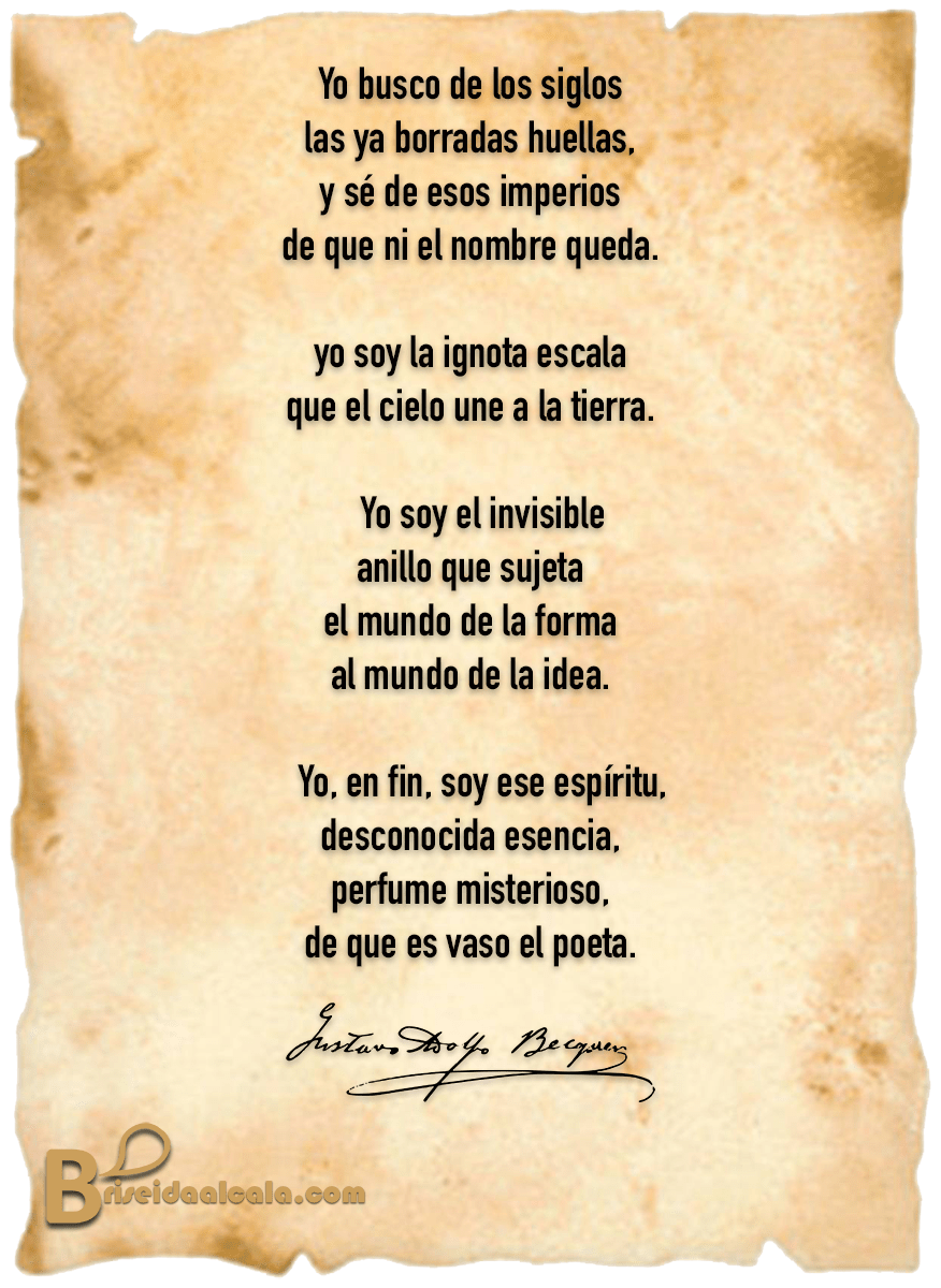 Bécquer rinde homenaje a lo intangible, considerando que solo estas realidades merecen ser inmortales. En su poesía, la inspiración es un vínculo vital entre lo imaginado y lo tangible, mientras que el amor se presenta como un ardor eterno que provoca desasosiego. Este contraste entre deseo y frustración refleja su visión del destino humano.