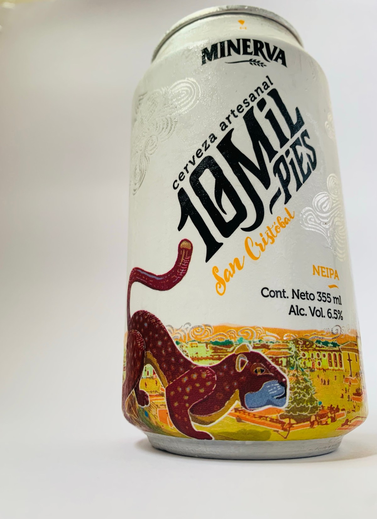 10 Mil Pies San Cristóbal es una NEIPA de la cervecería mexicana Minerva, caracterizada por su color amarillo intenso y aroma frutal, con notas de durazno, mango y toronja. Su cuerpo es medio, con amargor presente pero equilibrado. Ideal para maridar con ensaladas y ceviches. Se recomienda disfrutarla sola. Cuatro estrellas.