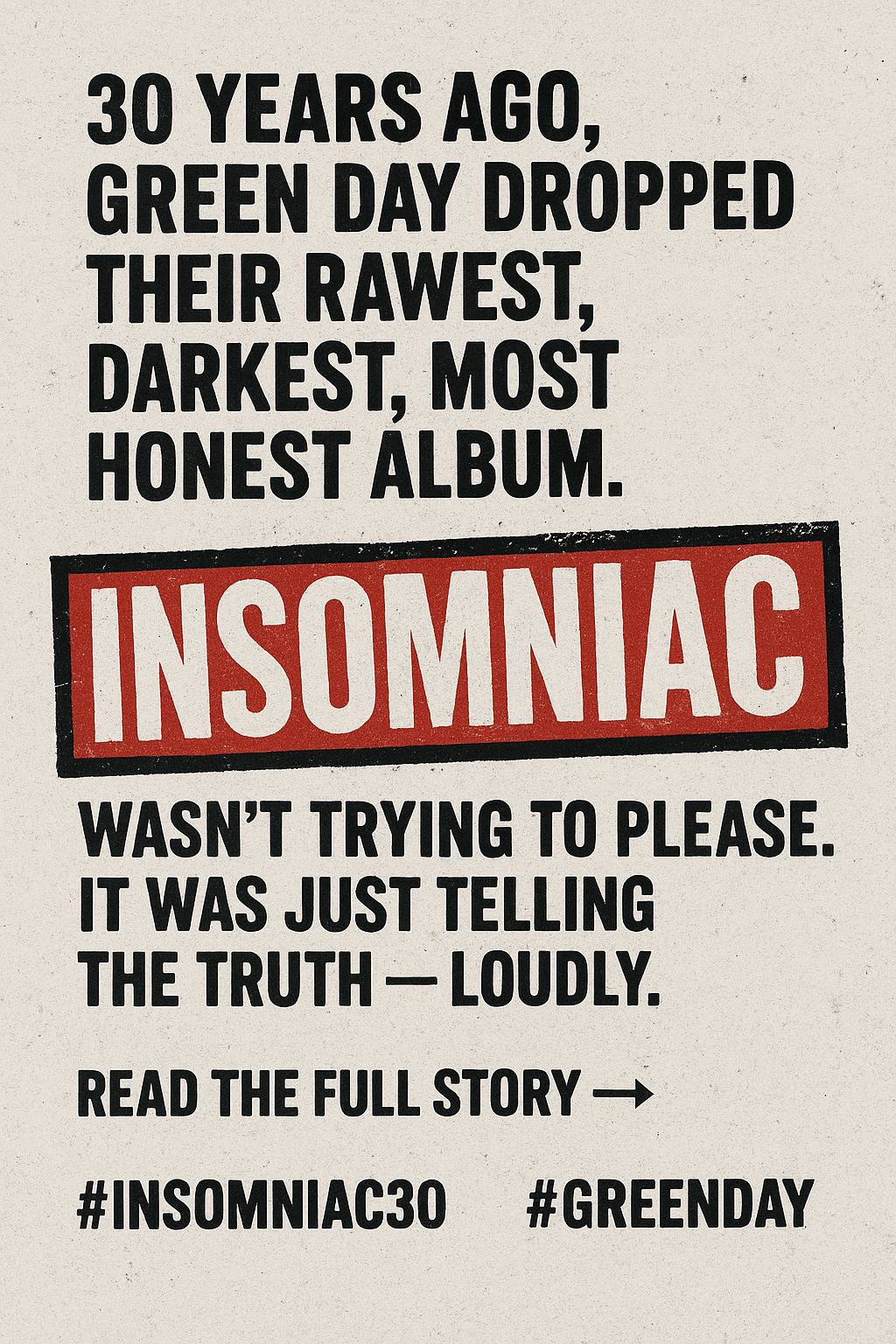 En octubre de 2025, el álbum más oscuro y crudo de Green Day cumple tres décadas. En esta entrada celebro los 30 años de “Insomniac”, ese disco que llegó sin pedir permiso y se quedó para siempre. Catorce canciones que gritan desde el desvelo, la rabia y la lucidez punk. Lo escucho otra vez, con una cerveza oscura en la mano, como quien vuelve a un cuarto donde todo comenzó.